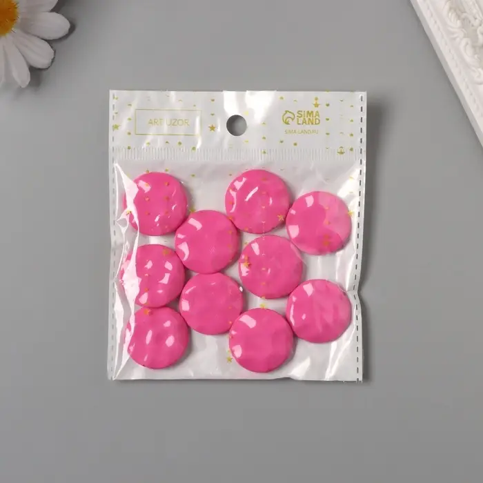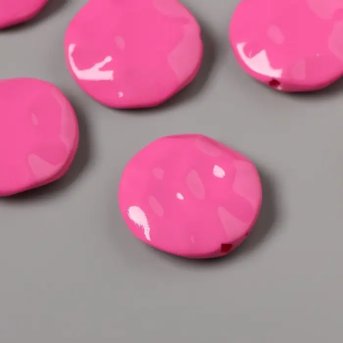 Бусины для творчества акрил "Плоский мятый круг" розовый 2,5х2,5х0,6 см
