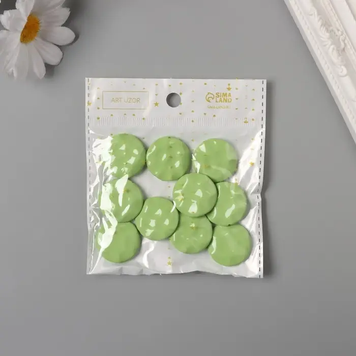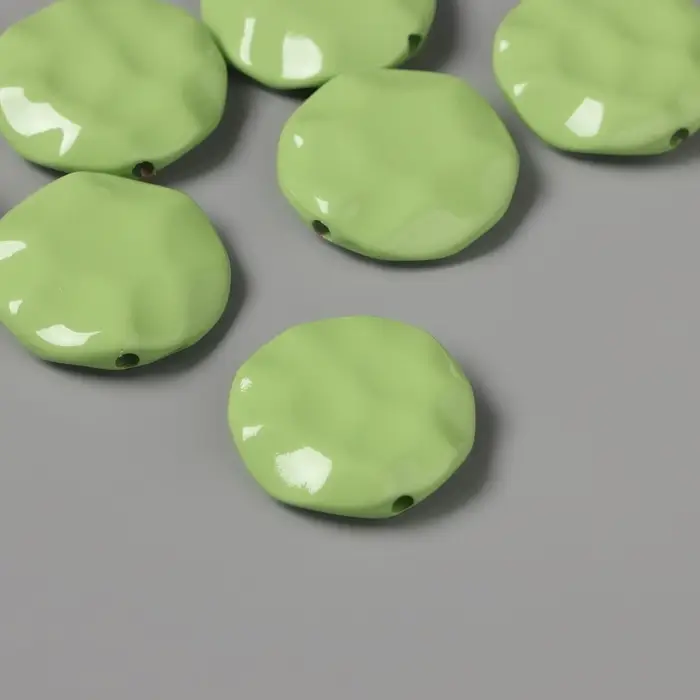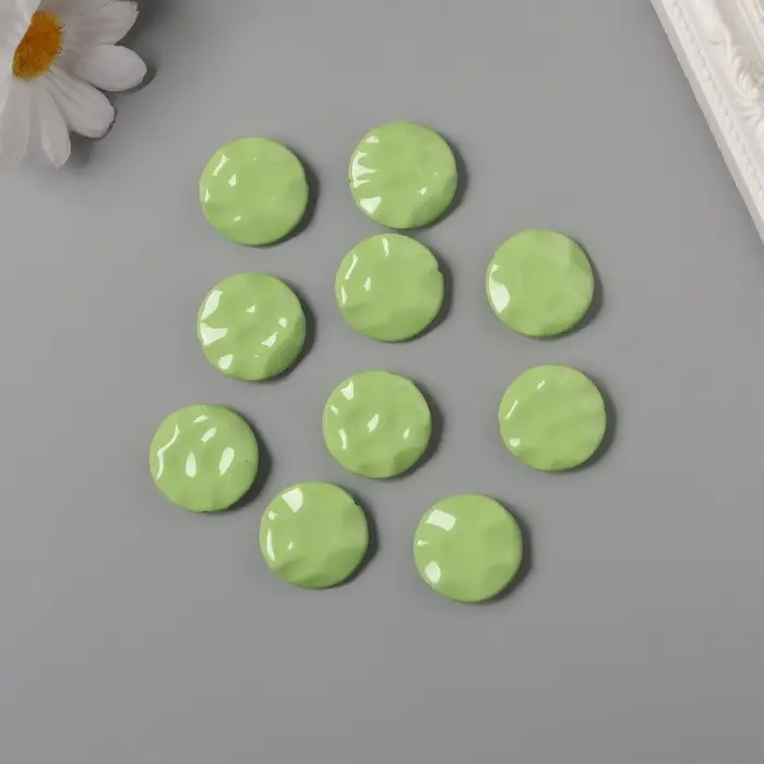Бусины для творчества акрил "Плоский мятый круг" зелёный 2,5х2,5х0,6 см