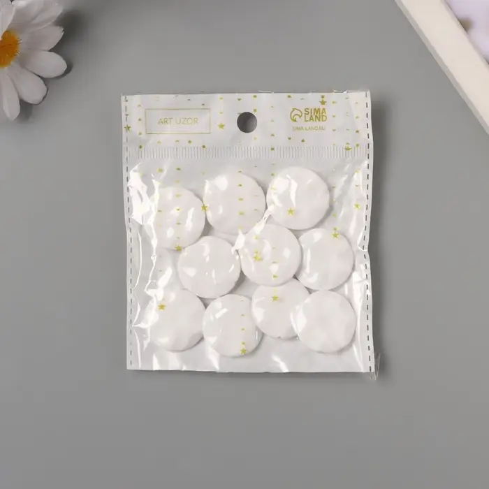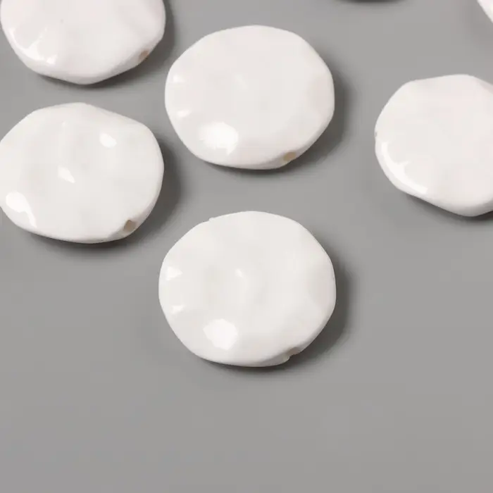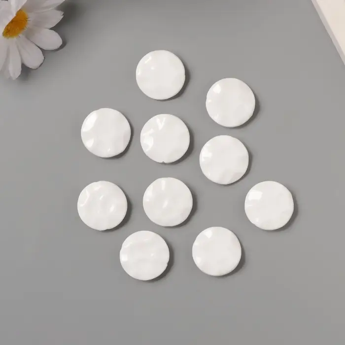 Бусины для творчества акрил "Плоский мятый круг" белый 2,5х2,5х0,6 см