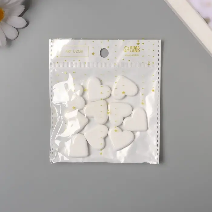 Бусины для творчества акрил "Сердечки гладкие" белый 2,4х2х0,5 см