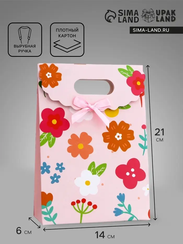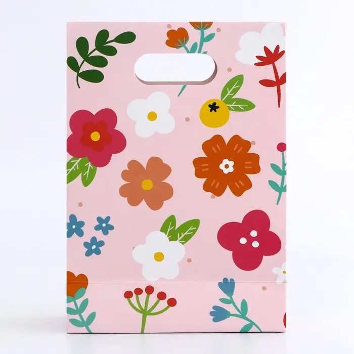 Подарочная коробка - пакет, упаковка с вырубной ручкой, «Летние цветы», 14×6×21 см