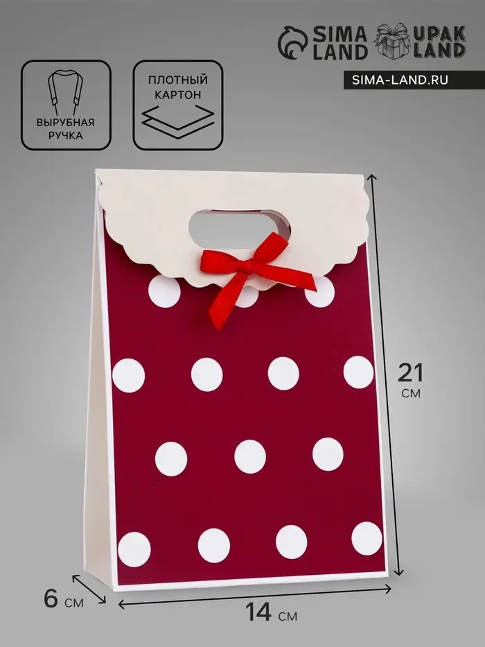 Подарочная коробка - пакет, упаковка с вырубной ручкой, «Горох», 14×6×21 см
