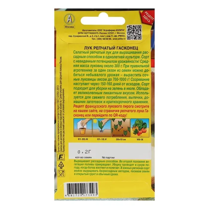 Семена Лук репчатый "Гасконец", ц/п 0,2 г