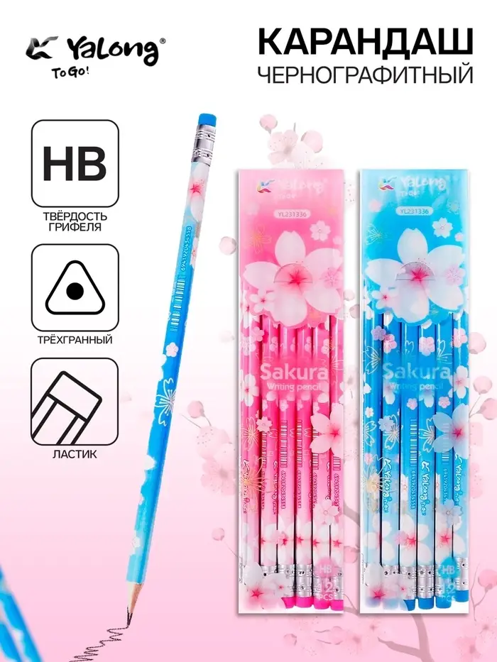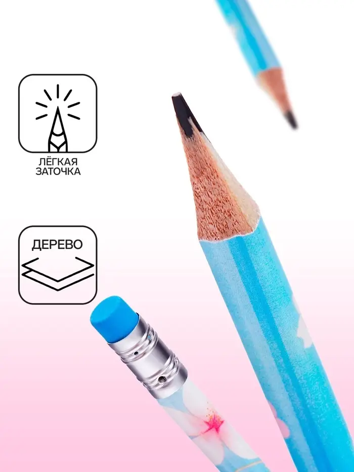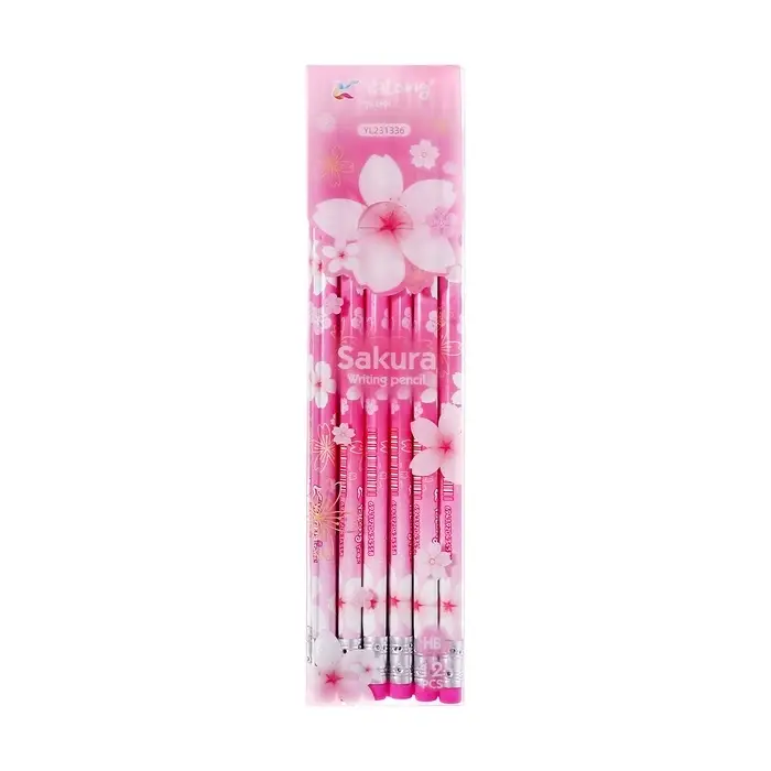 Карандаш чернографитный НВ с ластиком, Сакура МИКС