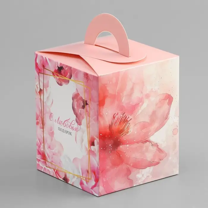 Коробка оформлена в пастельных тонах с нежным цветочным узором, отражающим весеннюю свежесть и романтическое настроение. Ее легко открыть и приятно держать в руках, что делает каждое распаковку настоящим событием.