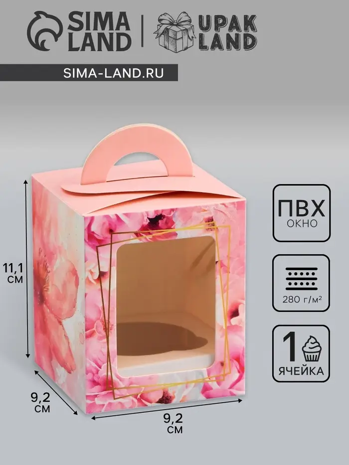 Коробка для 1 капкейка,«С Любовью», 9.2×9.2×11.1 см