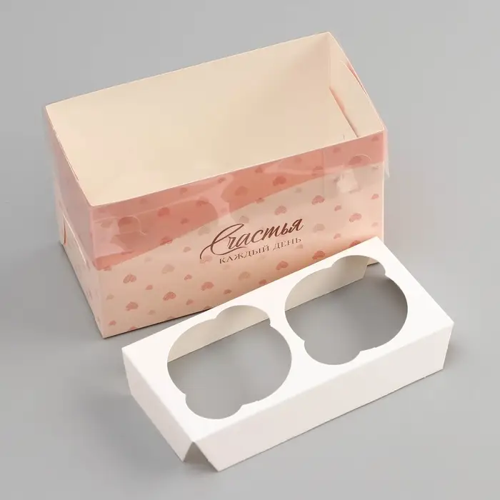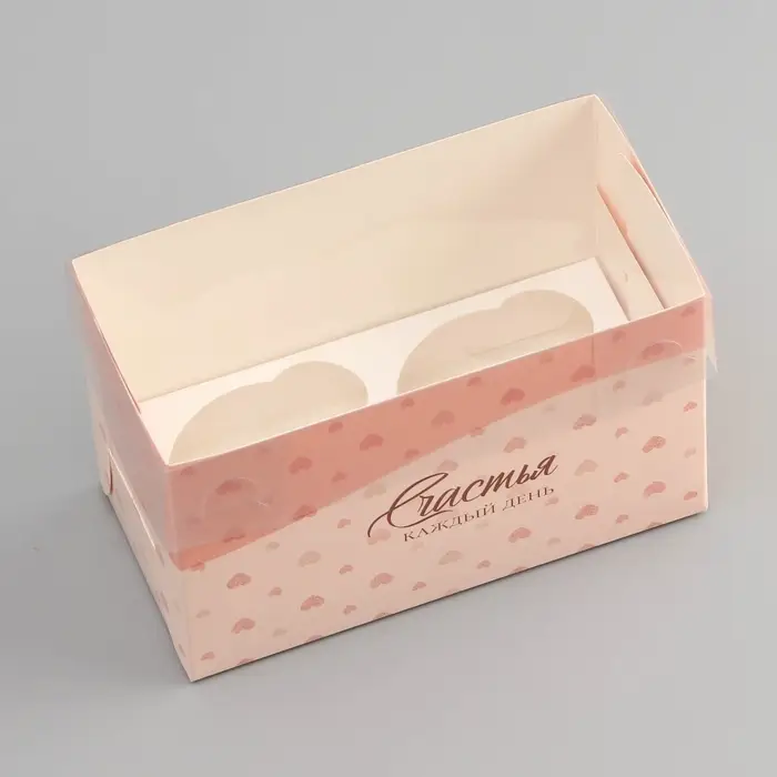 Коробка для 2 капкейка с прозрачной крышкой, «Сердечки», 16×8×10 см