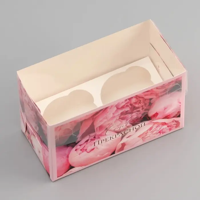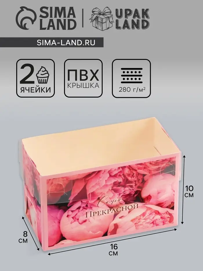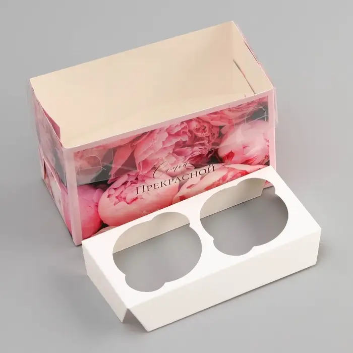 Коробка для 2 капкейка с прозрачной крышкой, «Самой прекрасной», 16×8×10 см