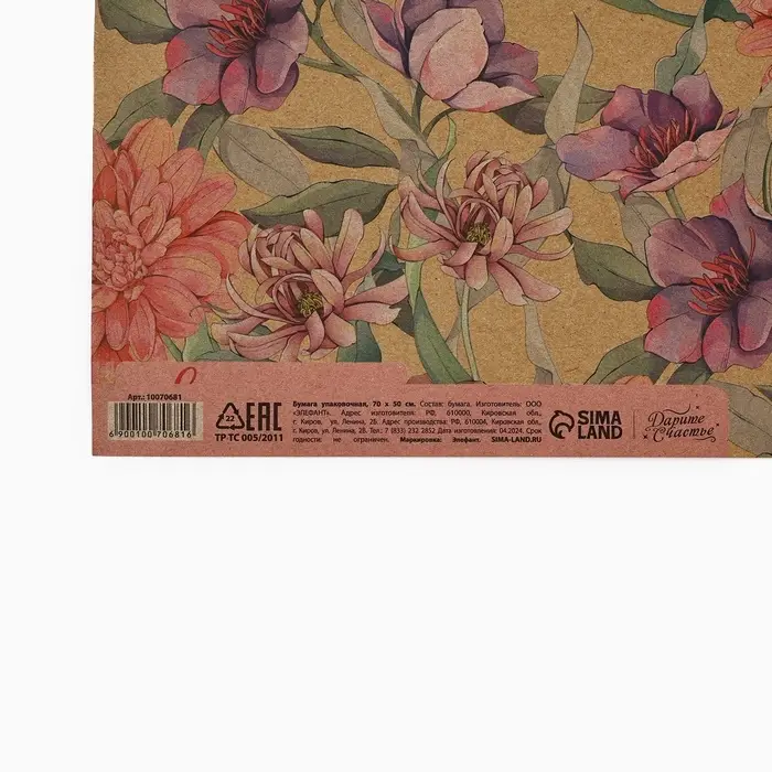 Бумага упаковочная крафтовая «8 марта», 50 х 70 см