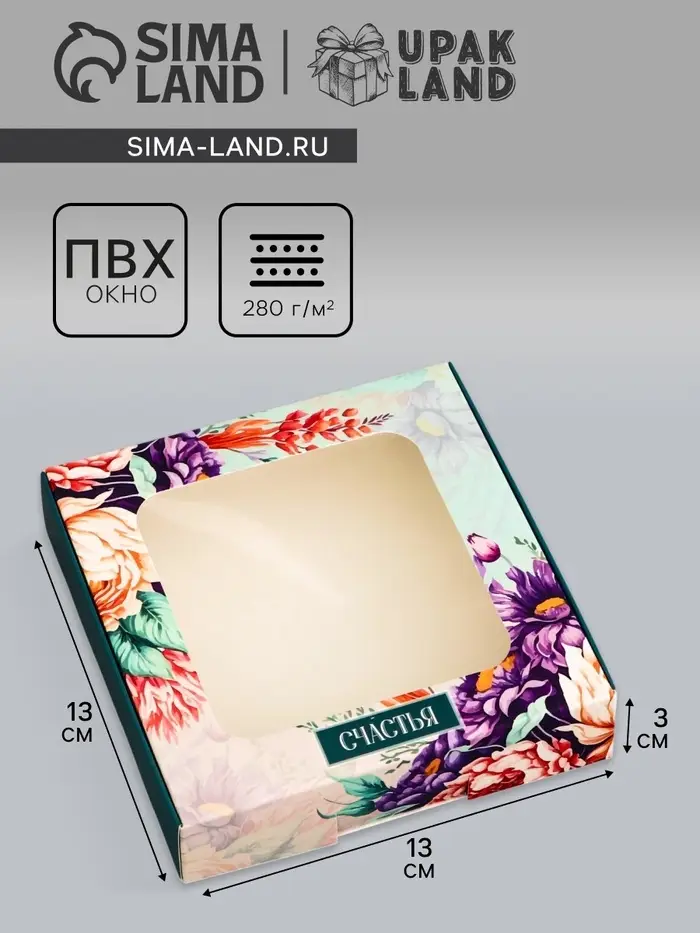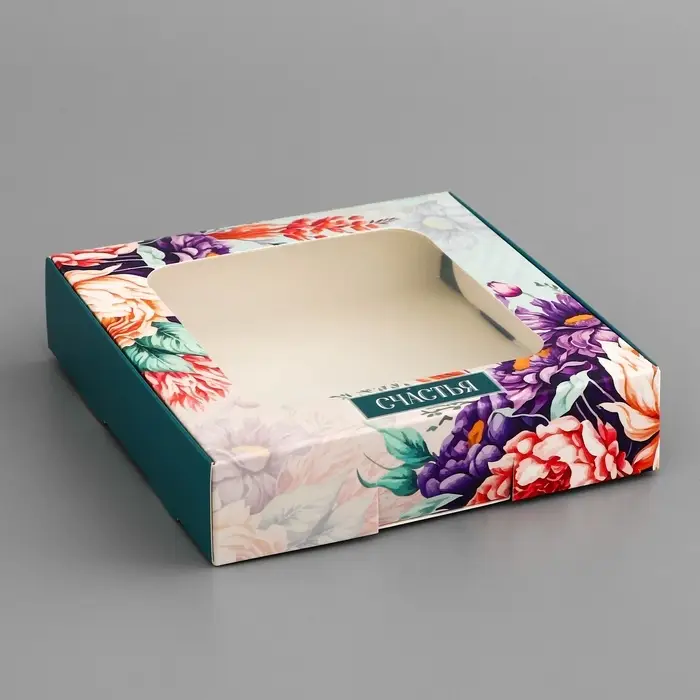 Коробка подарочная сборная с окном, упаковка, «Цветочки», 13×13×3 см