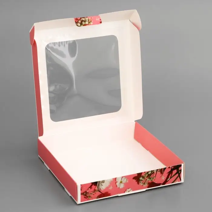 Коробка оформлена в пастельных тонах с нежным цветочным узором, отражающим весеннюю свежесть и романтическое настроение. Ее легко открыть и приятно держать в руках, что делает каждое распаковку настоящим событием.
