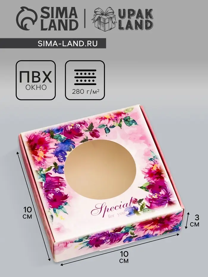 Коробка подарочная сборная с окном, упаковка, «Подарок для тебя», 10×10×3 см