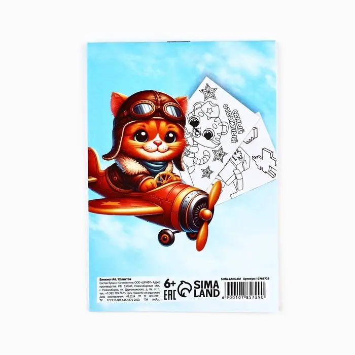 Блокнот раскраска А6, 12 л. «Енот. 23 февраля»