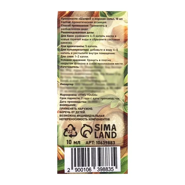 Аромамасло Шалфей и морская соль 10 мл