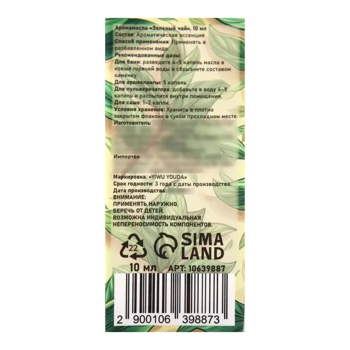Аромамасло Зелёный чай 10 мл