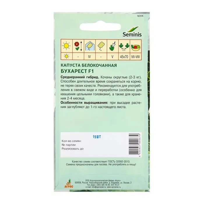 Семена Капуста б/к"Бухарест"F1 15шт* Seminis