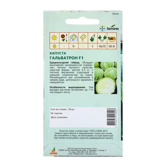 Семена капусты «Гальватрон» — это отличный выбор для любителей выращивания белокочанной капусты в открытом грунте. Этот гибрид F1 прекрасно подходит для средних сроков созревания и хранения до 5 лет, что делает его удобным вариантом как для личного огорода, так и для фермерских хозяйств.