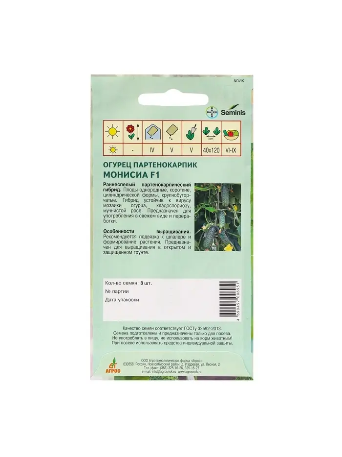 Семена Огурец"Монисиа"F1 8шт* Seminis