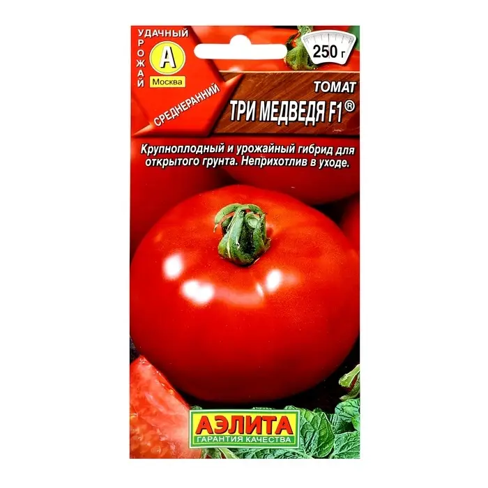 Семена томатов «Три Медведя» представляют собой среднеранний гибрид F1, который можно выращивать в открытом грунте. Эти томаты с круглой формой плодородны и удобны для культивирования. Детерминантный (среднерослый) тип роста делает их идеальными для небольших приусадебных участков. Эти семена остаются свежими на протяжении 4 лет, что позволяет планировать посадки заранее.