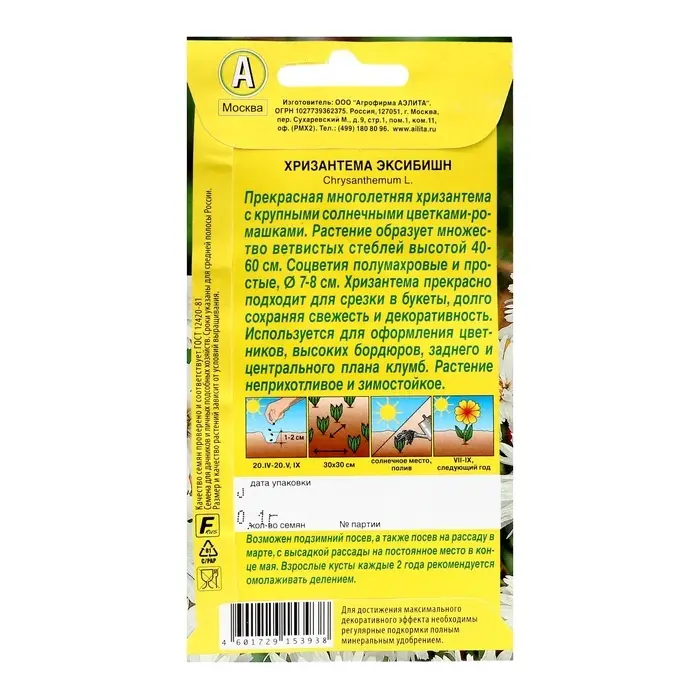 Семена цветов Хризантема "Эксибишн", ц/п, 0,1 г