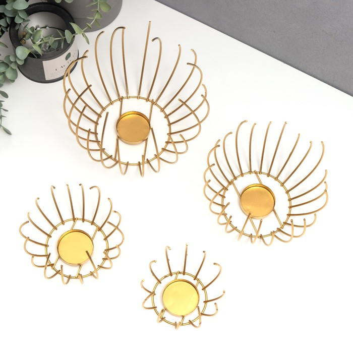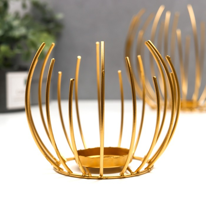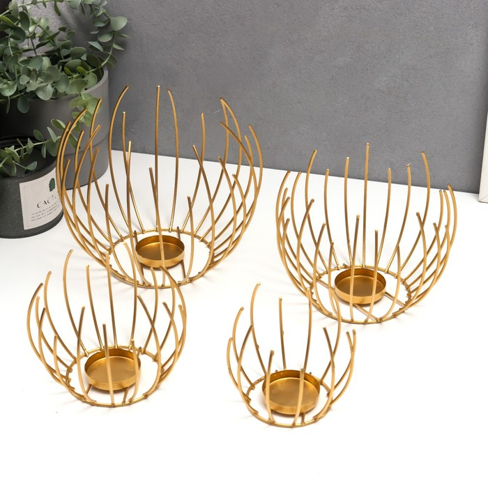 Подсвечник металл "Шар из прутьев" набор 4 шт золото 17х20х20 см