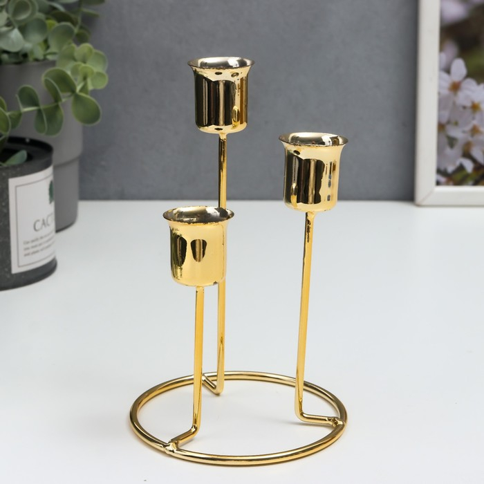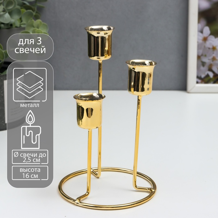 Подсвечник металл на 3 свечи "Восхождение" золото 16х9х9 см
