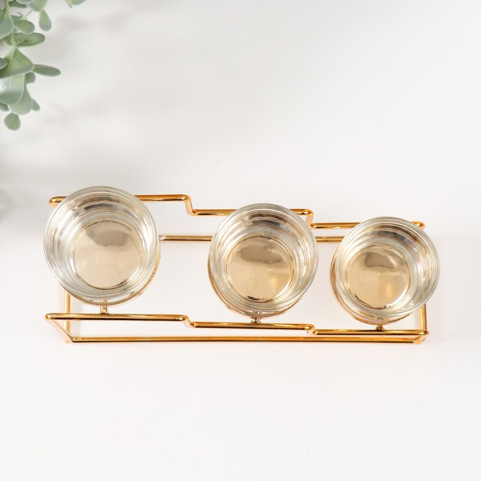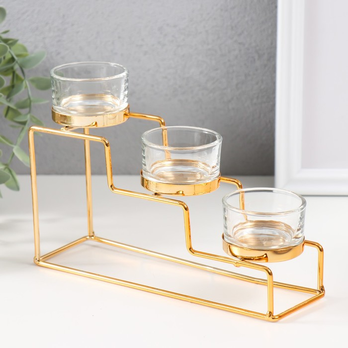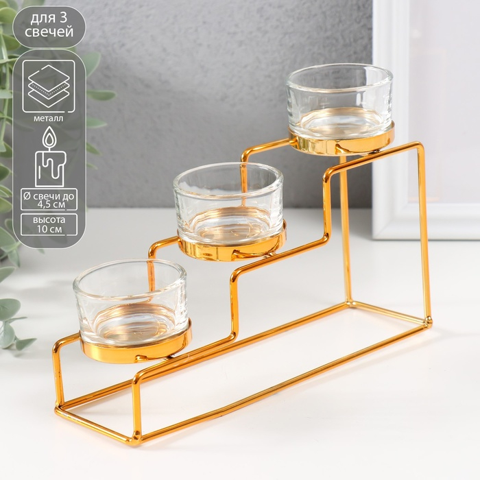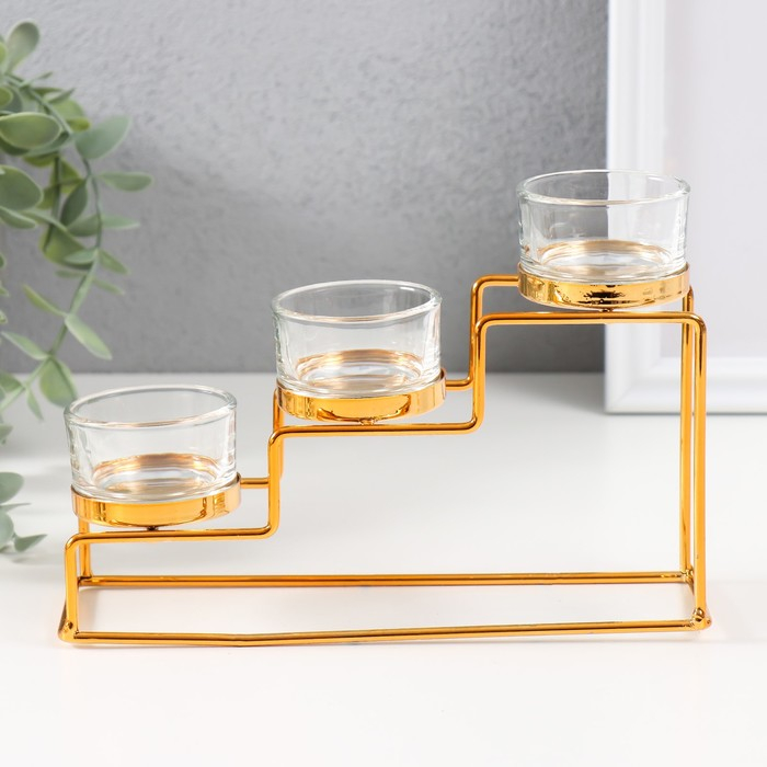 Подсвечник металл, стекло на 3 свечи "Лестница" золото 20х6х10 см