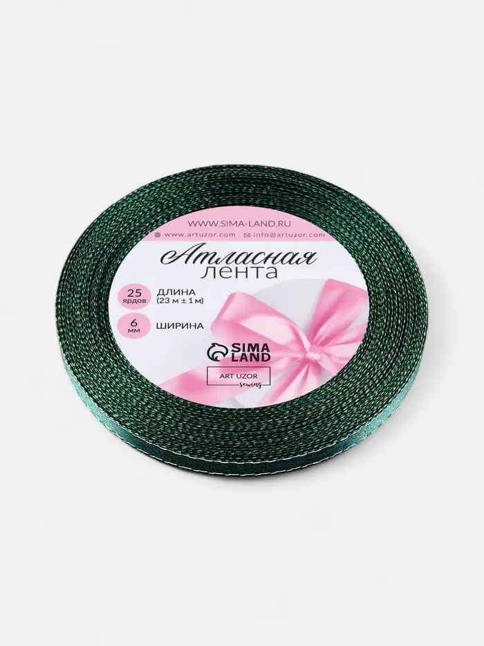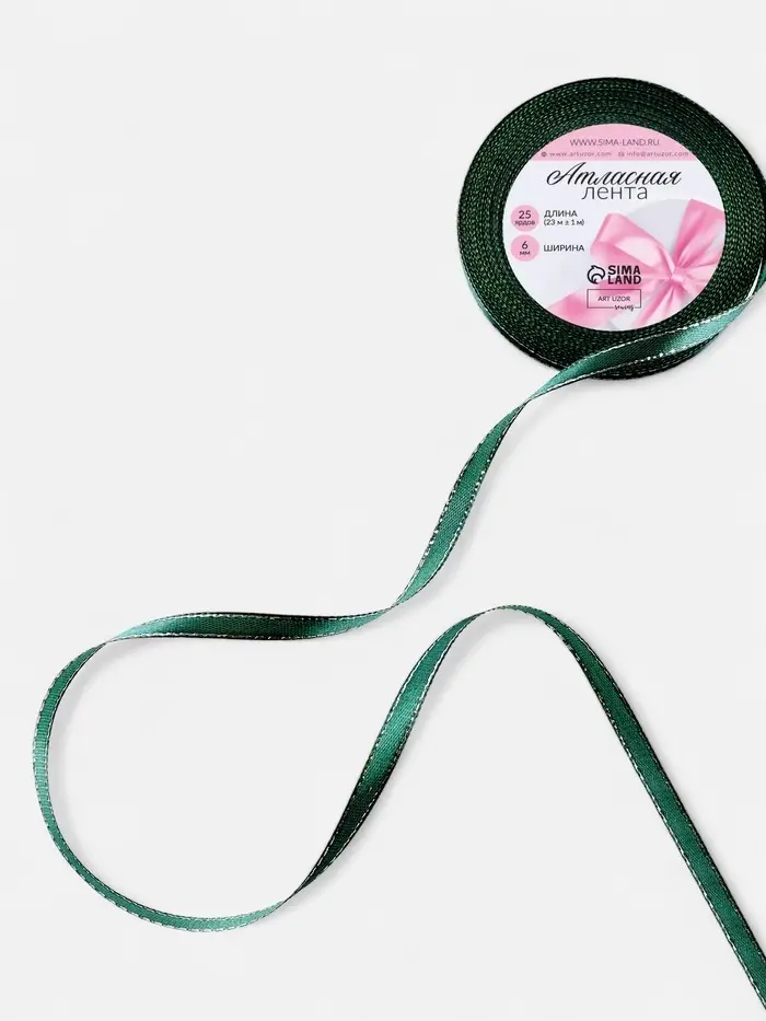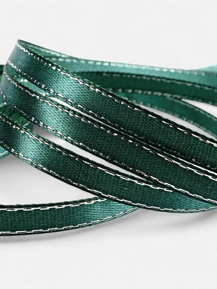 Лента атласная, с серебряным люрексом, 6 мм, 23±1 м, зелёная №70