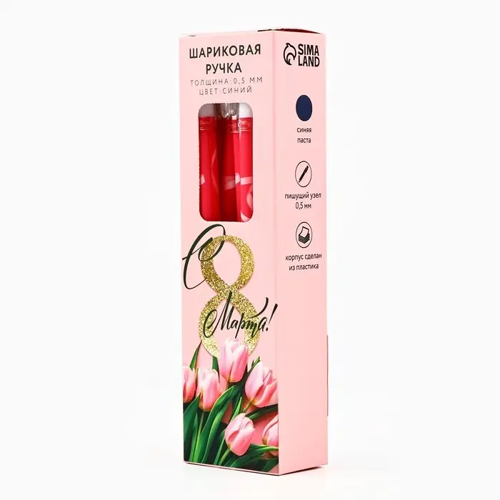 Ручка шариковая, пластик с колпачком «С 8 Марта!», синяя паста 0.5 мм