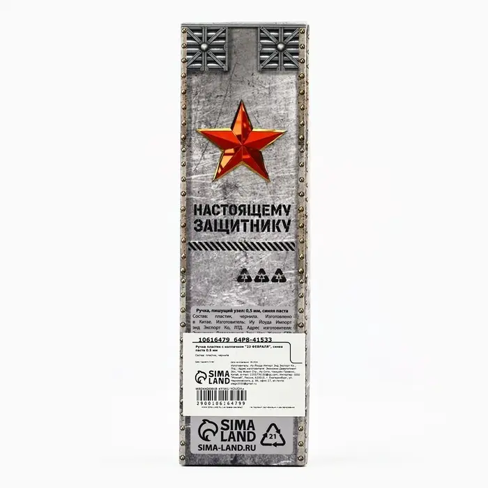 Ручка шариковая синяя паста, пластиковая со звездой "С 23 Февраля"