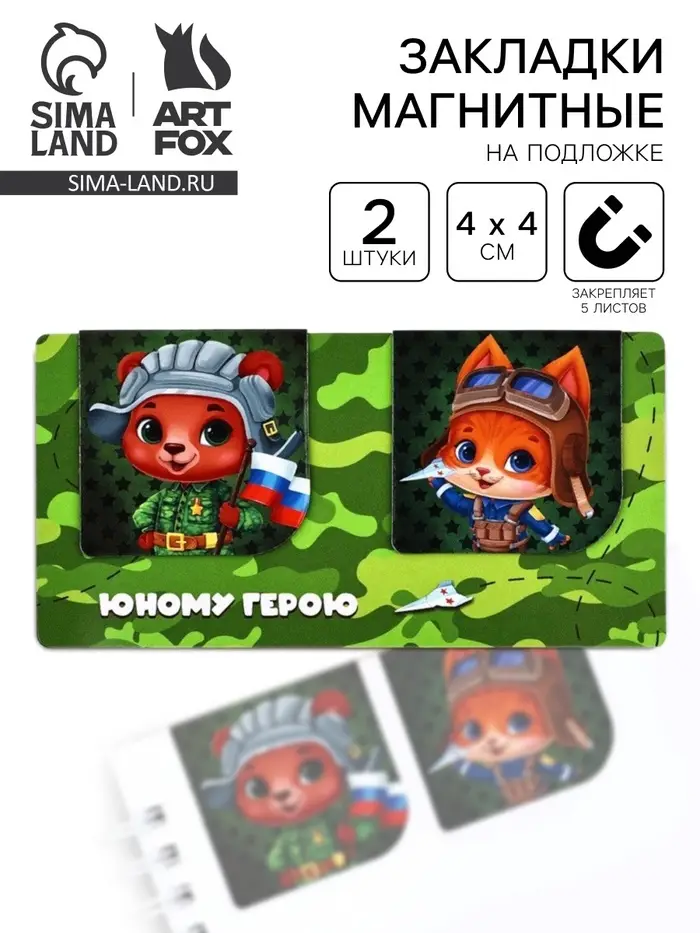 Магнитные закладки для книг, 2 шт. «Юному герою»