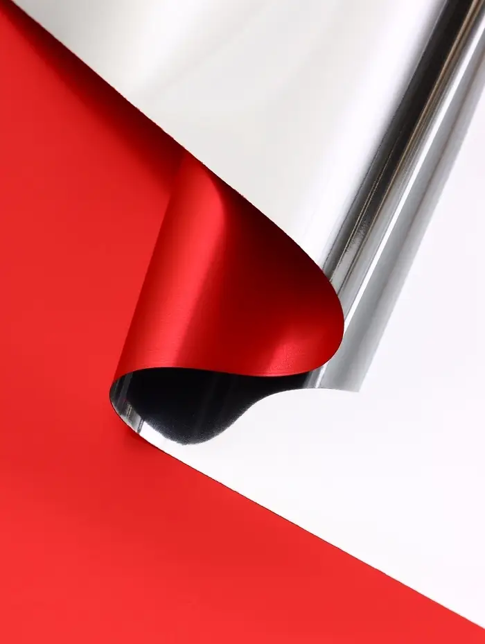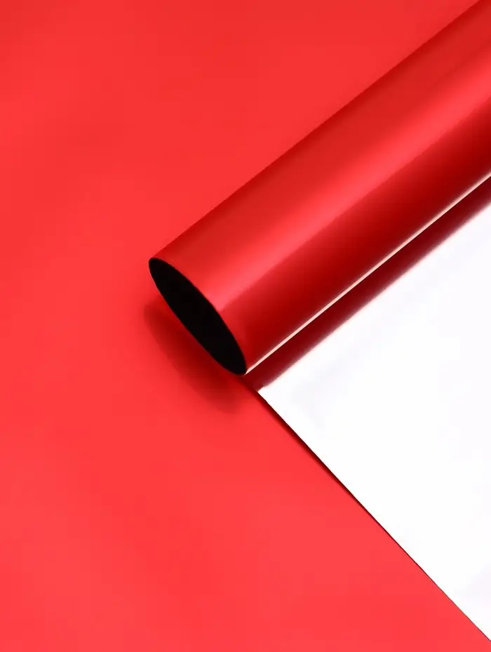 Флористическая пленка «Серебряная сторона» в красном цвете — это яркий и выразительный выбор для оформления цветочных композиций.