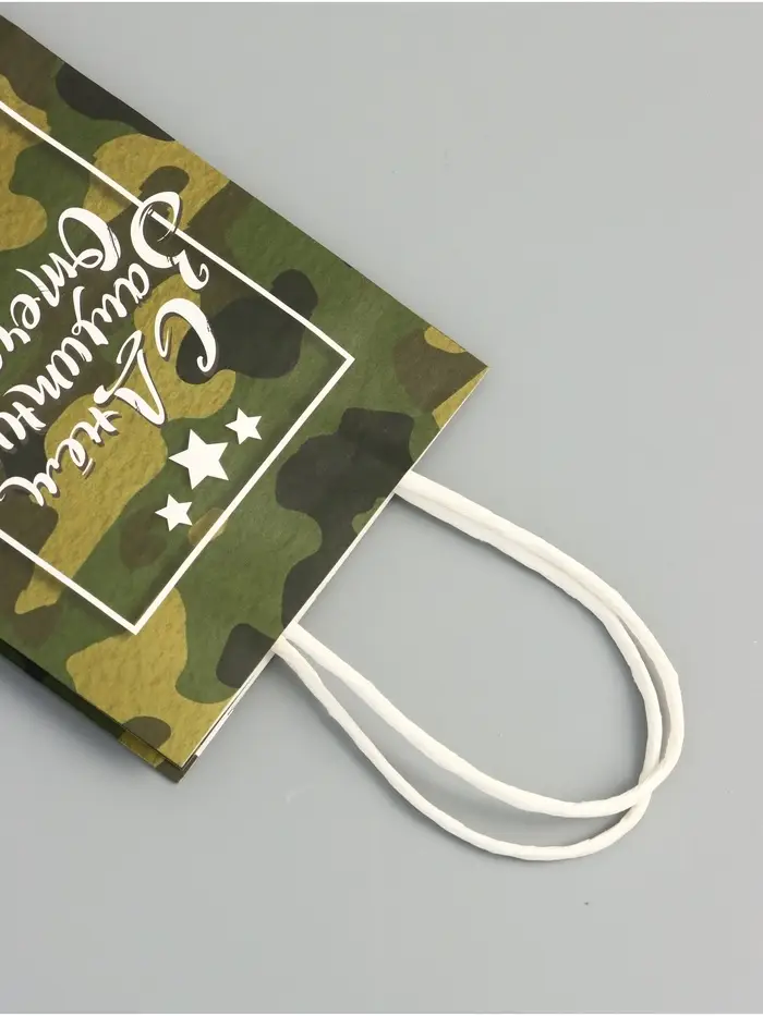 Этот подарочный пакет из крафт-бумаги на 23 февраля идеально подходит для мужских подарков.