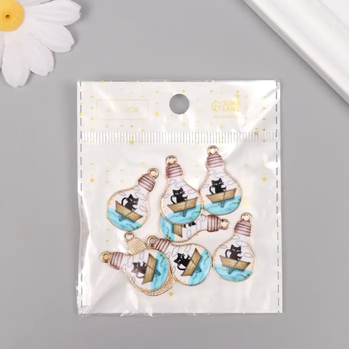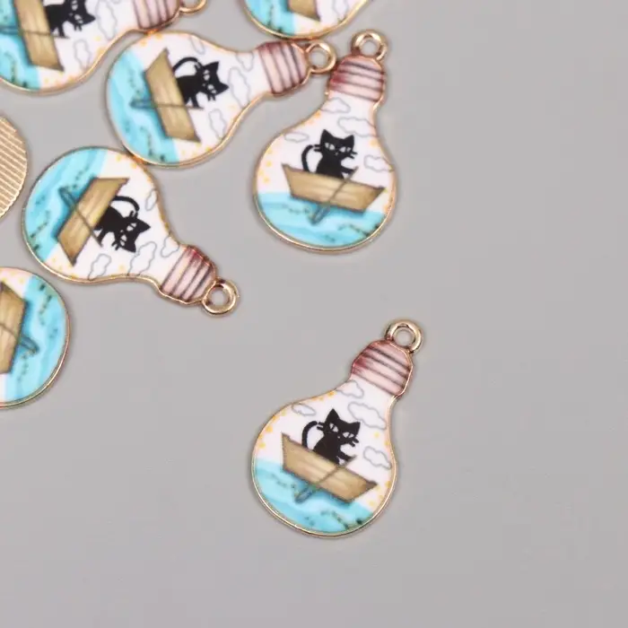 Декор для творчества металл, эмаль "Кот на лодке в лампочке" 2,8х1,6 см
