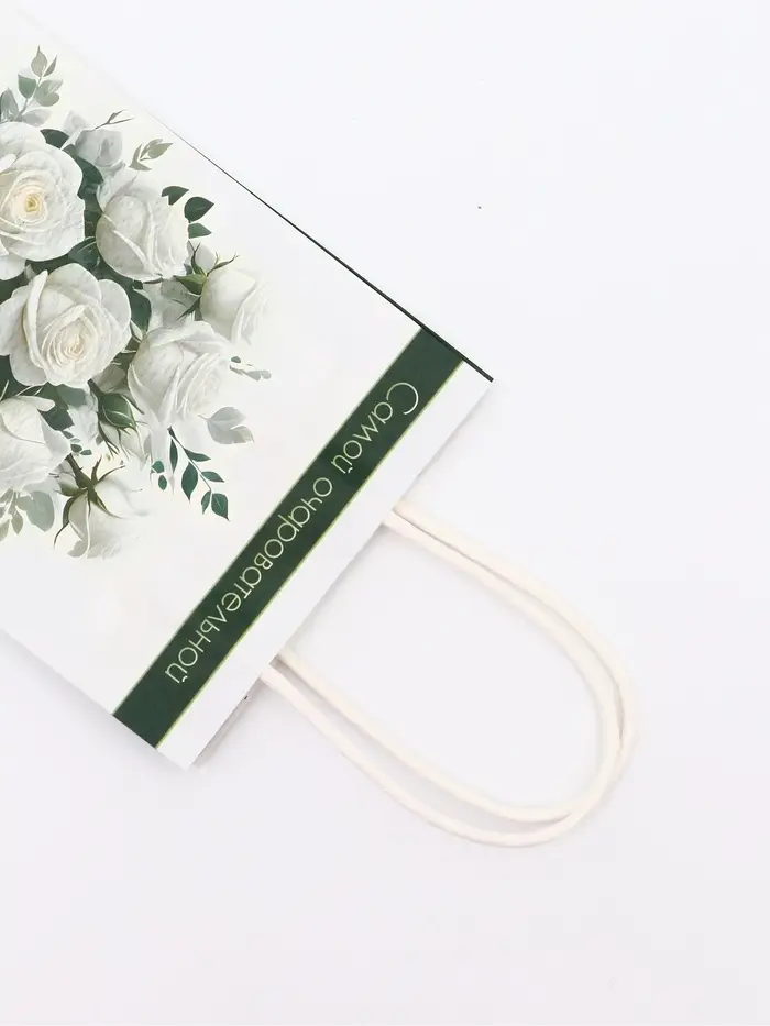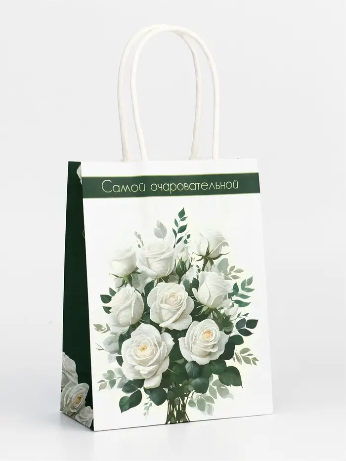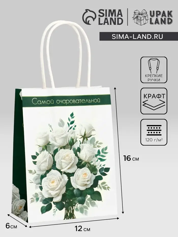 Этот пакет крафт на 8 Марта создан специально для того, чтобы сделать ваш подарок девушке ещё более особенным. Плотность бумаги 120 г/м² гарантирует прочность и надёжность пакета, позволяя безопасно переносить даже хрупкие и ценные вещи.