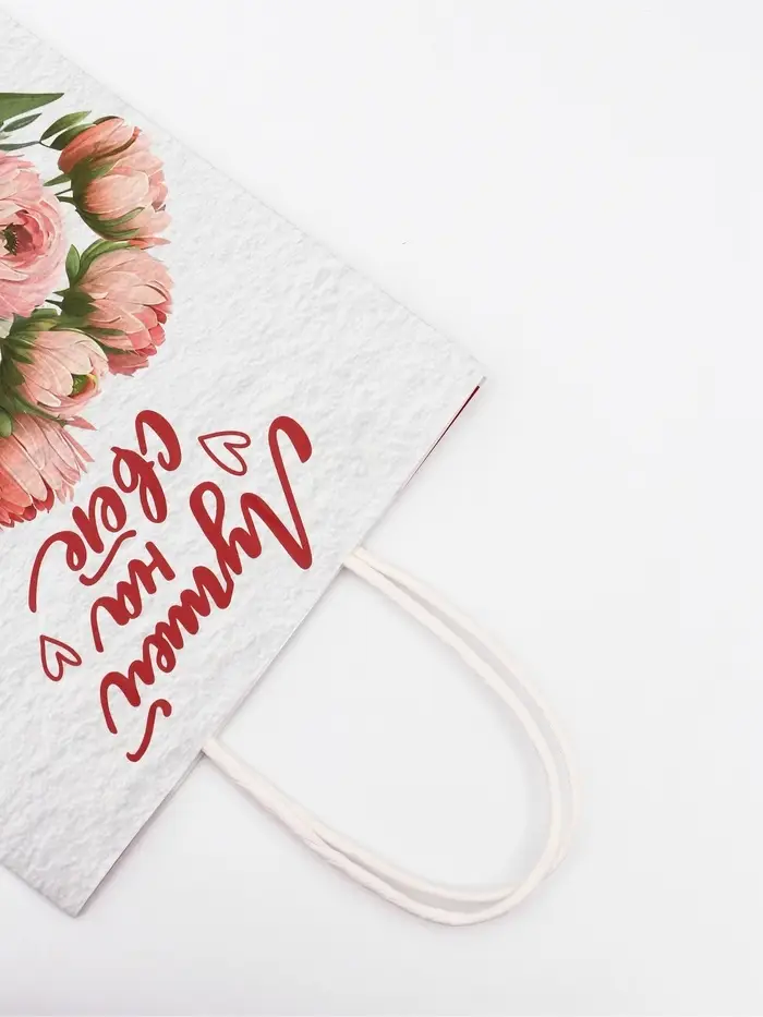 Этот пакет крафт на 8 Марта создан специально для того, чтобы сделать ваш подарок девушке ещё более особенным. Плотность бумаги 120 г/м² гарантирует прочность и надёжность пакета, позволяя безопасно переносить даже хрупкие и ценные вещи.
