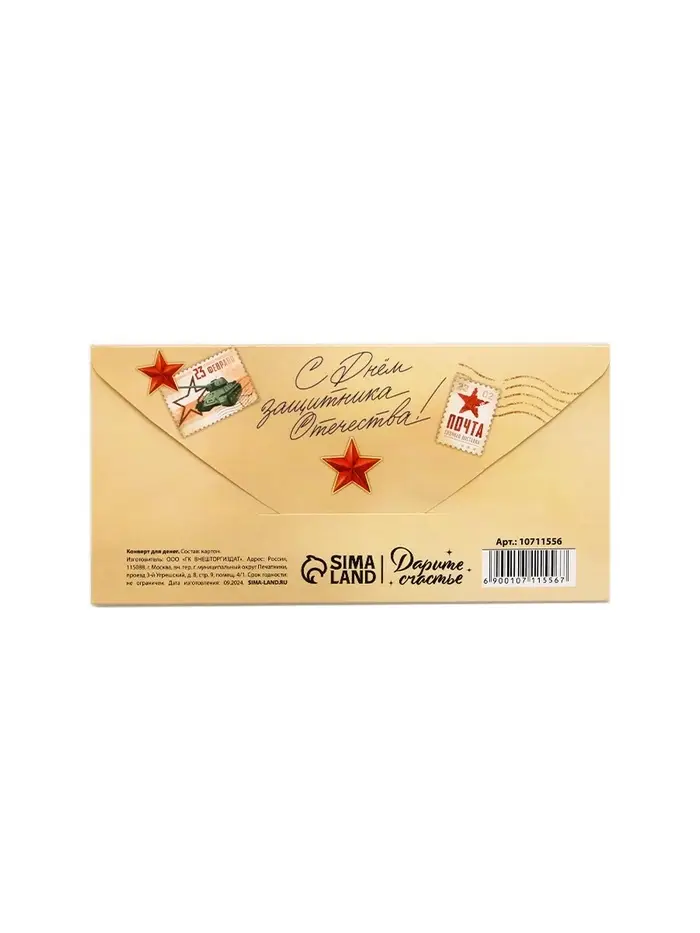 Конверт для денег «С 23 Февраля», настоящему герою, 16.5 х 8 см