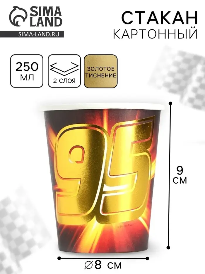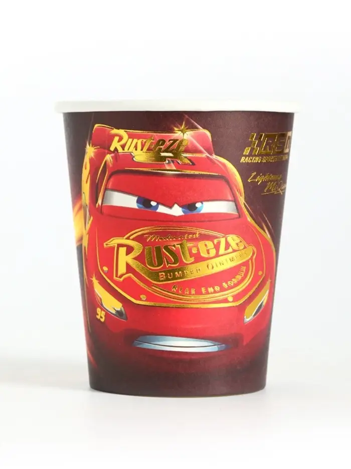 Стакан одноразовый бумажный с тиснением, 250 мл, Тачки