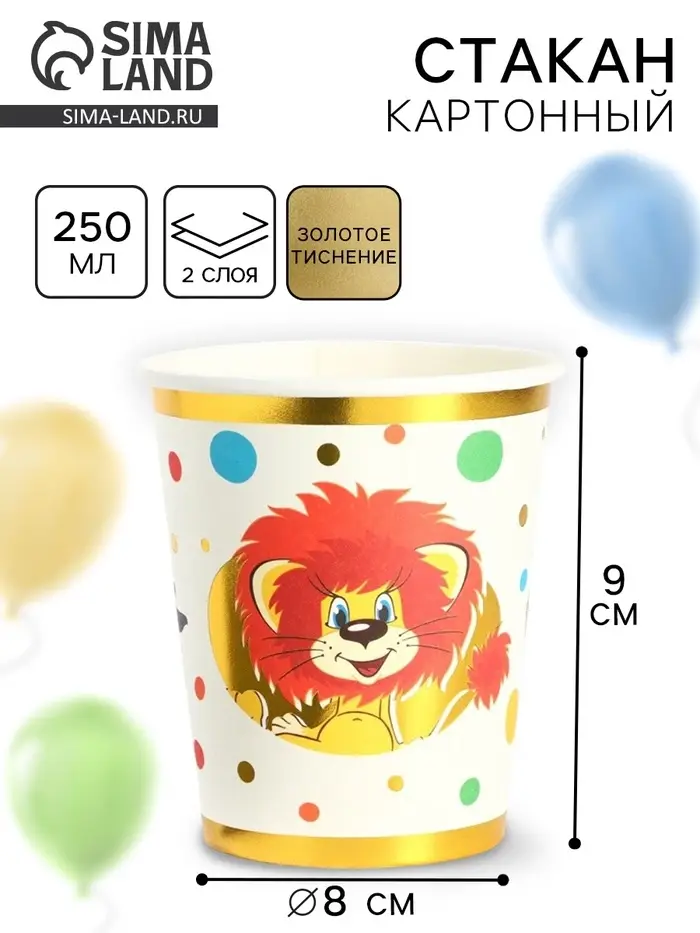 Стакан одноразовый бумажный с тиснением, 250 мл, Союзмультфильм