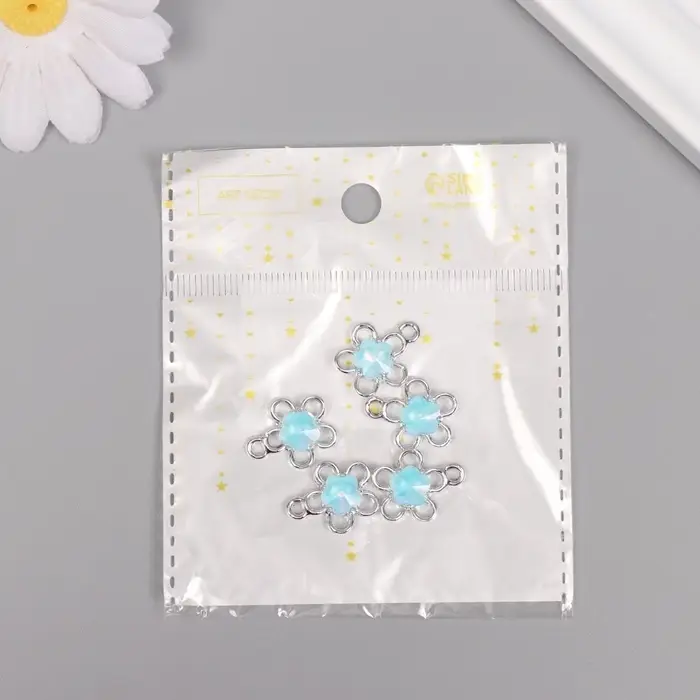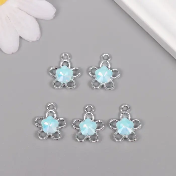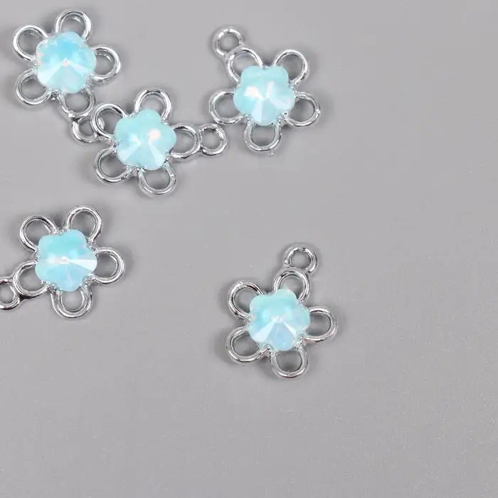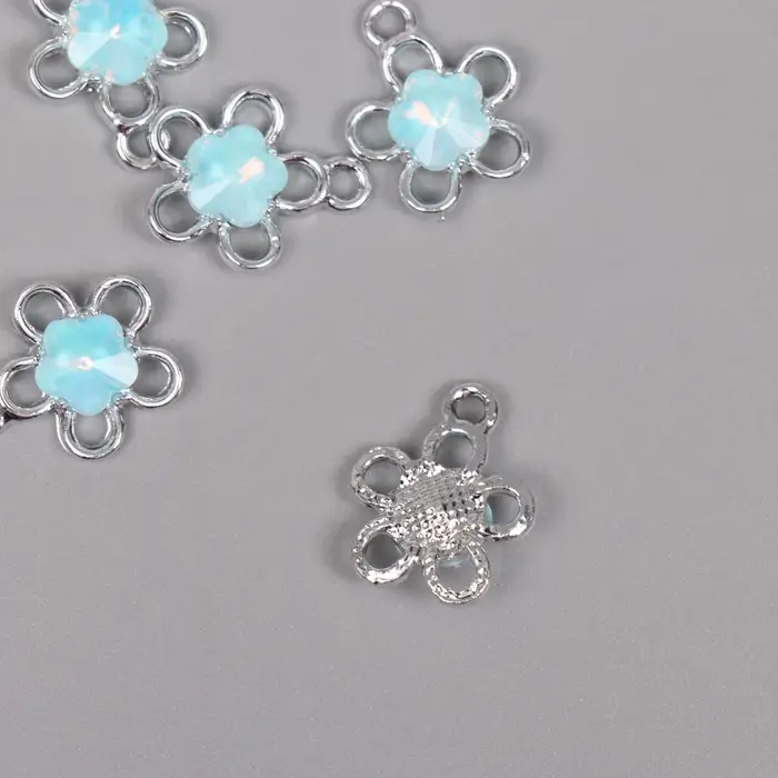 Декор для творчества металл "Цветок" серебро, голубой 1,8х1,5х0,5 см