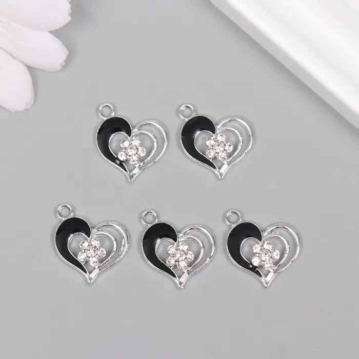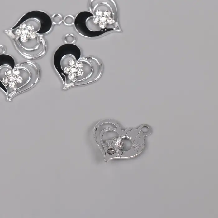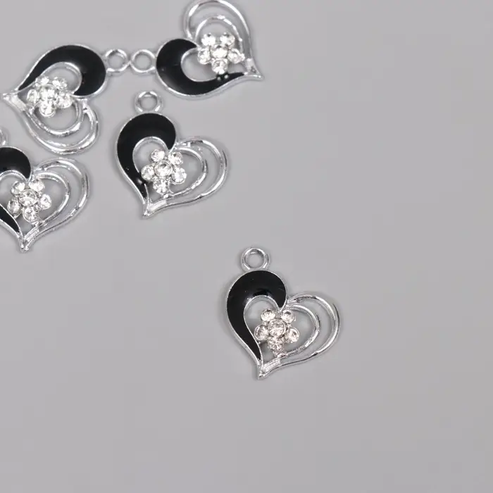 Декор для творчества металл, стразы "Сердце с цветочком" серебро, чёрный 2х1,7х0,3 см