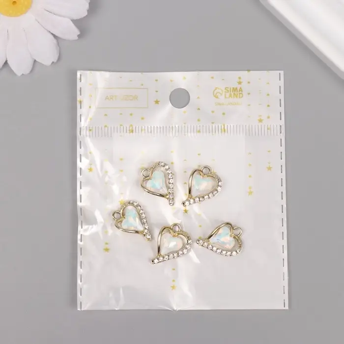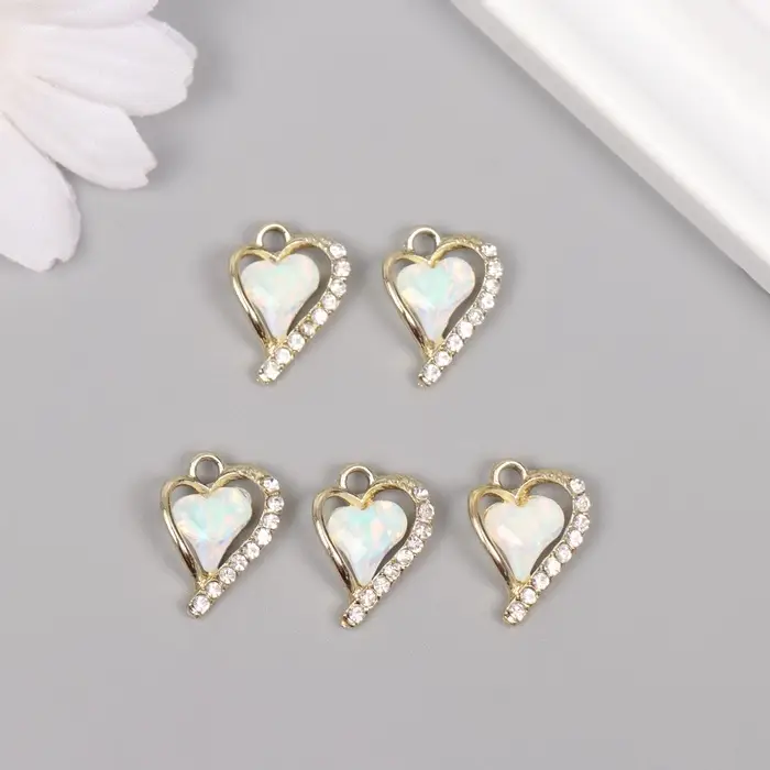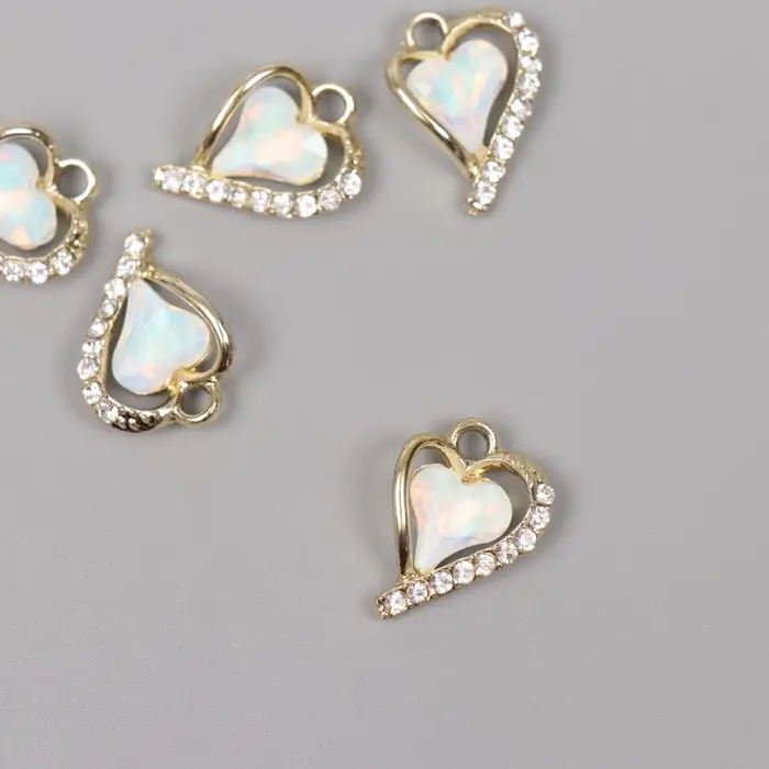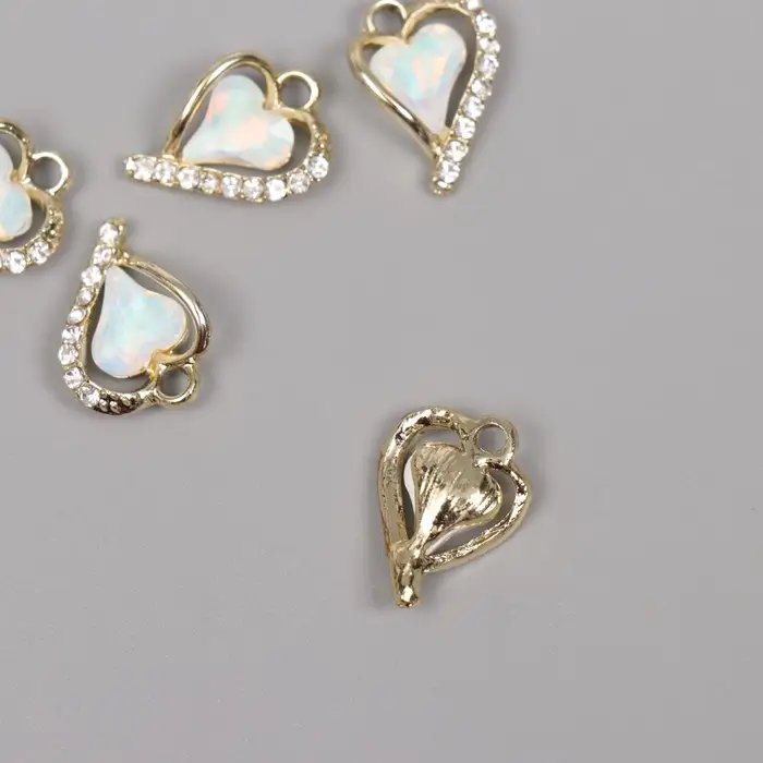 Декор для творчества металл, стразы "Изогнутое сердце" золото, белый 1,8х1,3х0,5 см