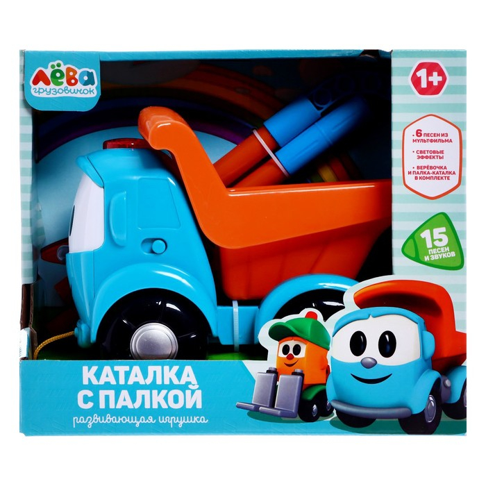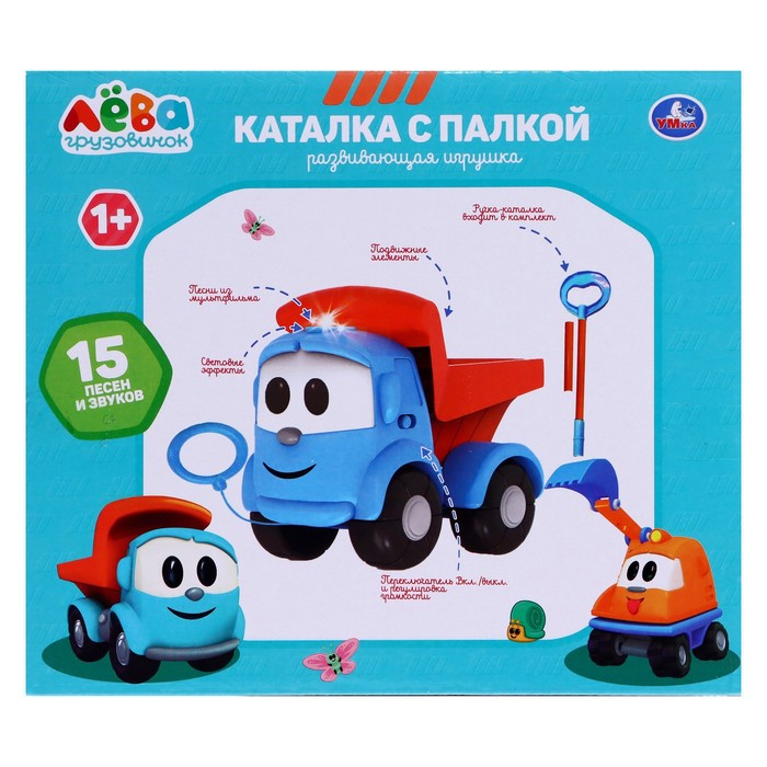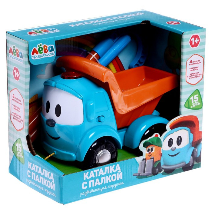 Каталка «Грузовичок Лева» с палкой, 15 песен и звуков, световые эффекты