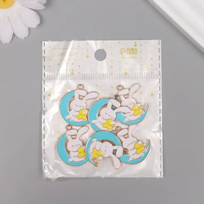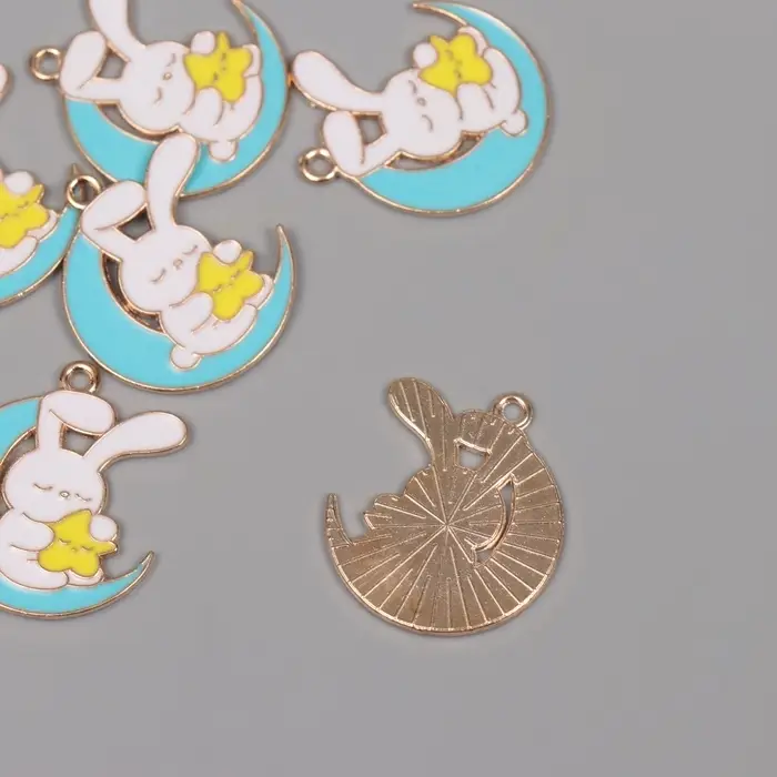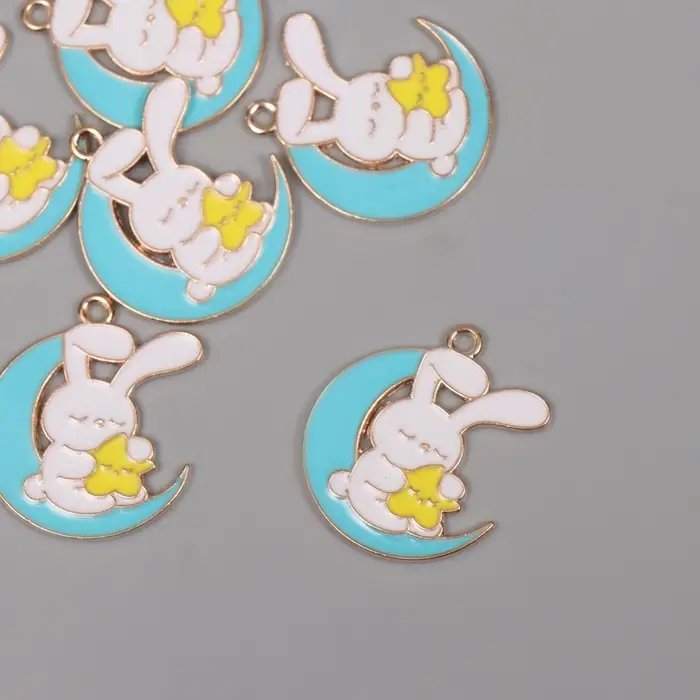 Декор для творчества металл, эмаль "Зайчик на голубом месяце" 2,9х2,5 см