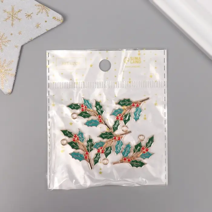 Декор для творчества металл, эмаль "Ветка рябины" 3,3х1,9 см