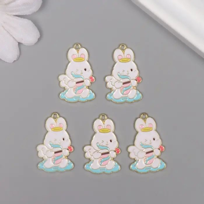Декор для творчества металл, эмаль "Зайчик-купидон" 2,7х1,7 см
