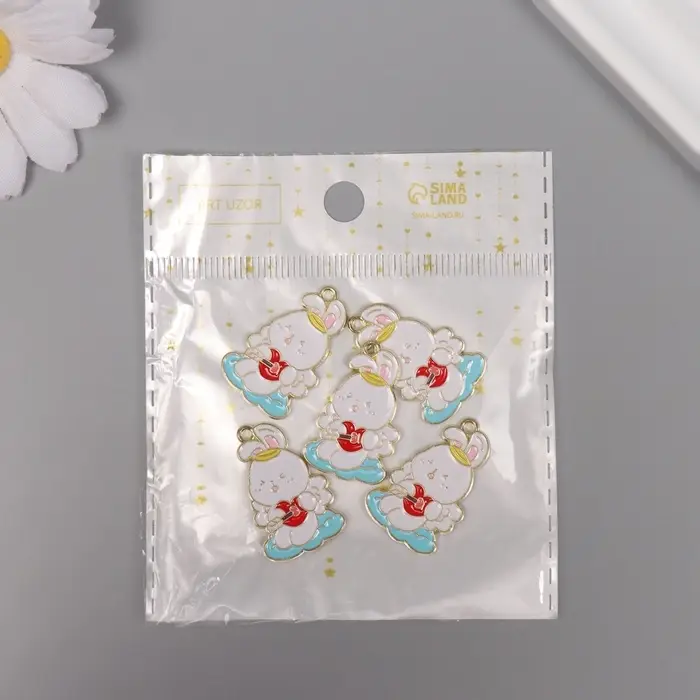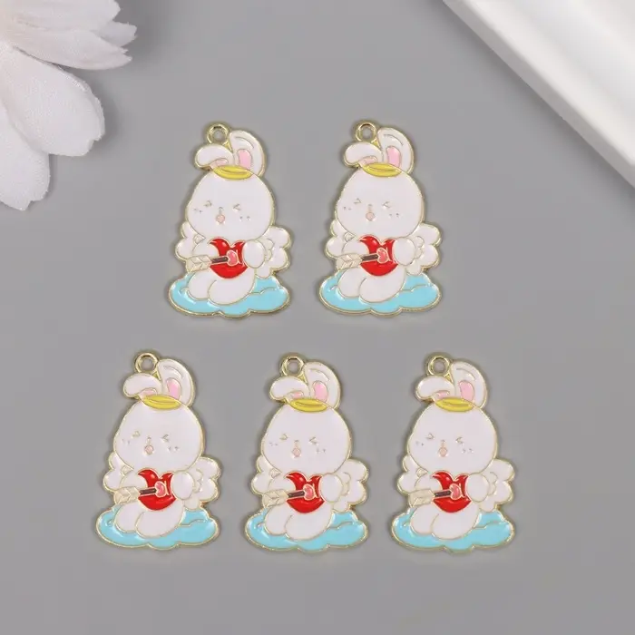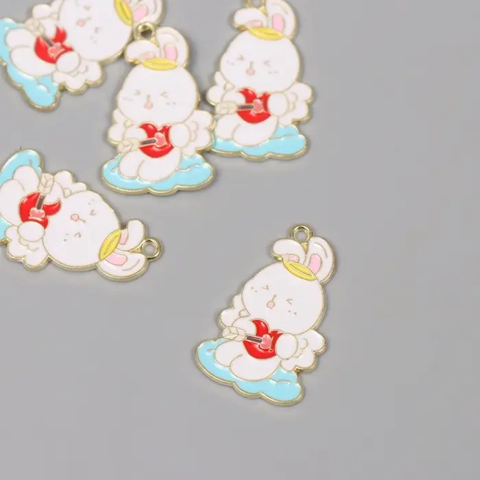 Декор для творчества металл, эмаль "Зайчик со стрелой в сердце" 2,8х1,8 см