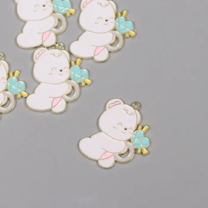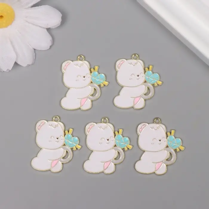 Декор для творчества металл, эмаль "Мишка с сердечком" 2,8х2,3 см