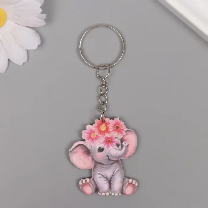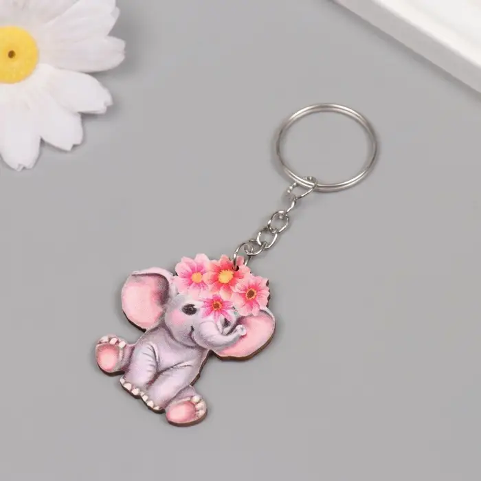 Брелок дерево "Слонёнок с цветным венком" 4,1х3,5х0,3 см