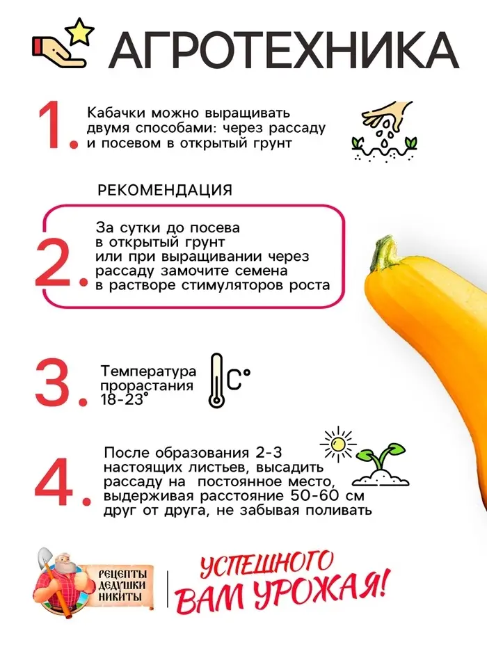 Кабачок цуккини "Желтоплодный" станет ярким и вкусным дополнением к вашему огороду, радуя вас богатым урожаем!